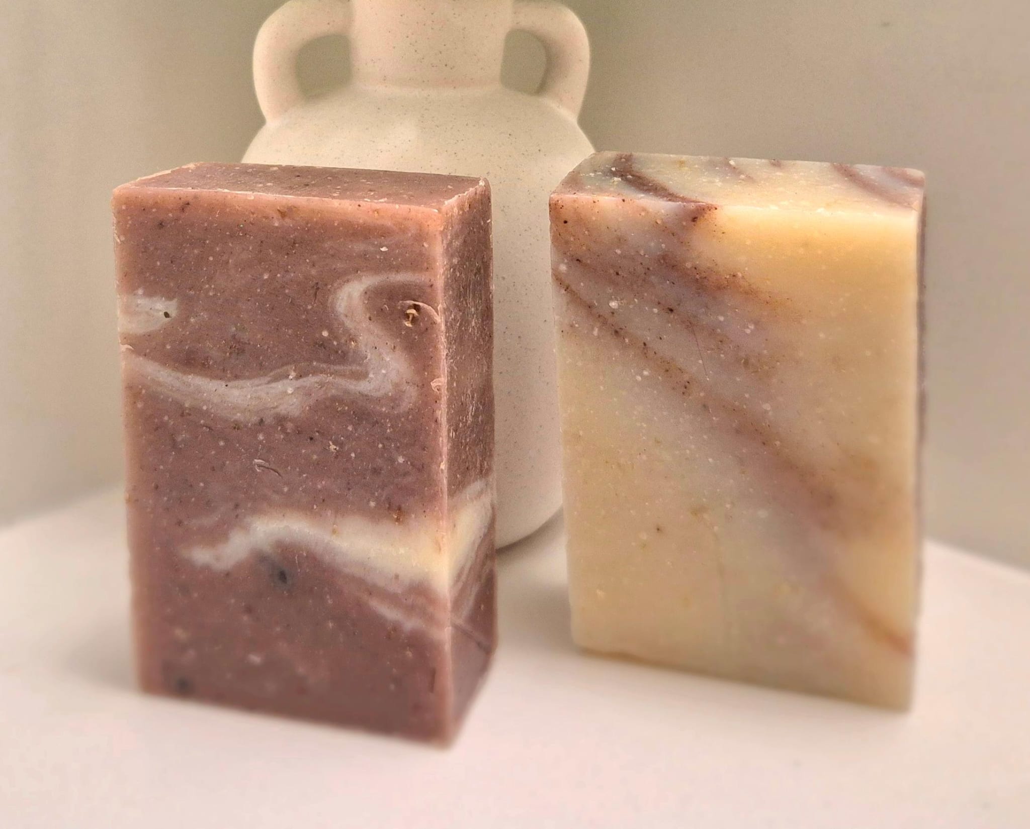 A moisturizing goat milk soap bar designed to hydrate and condition the face, body, and hair. Enriched with sea moss, comfrey root, kaolin clay, coconut, olive, shea butter, and jojoba oils. Aromatically grounded in patchouli, clove bud and geranium.