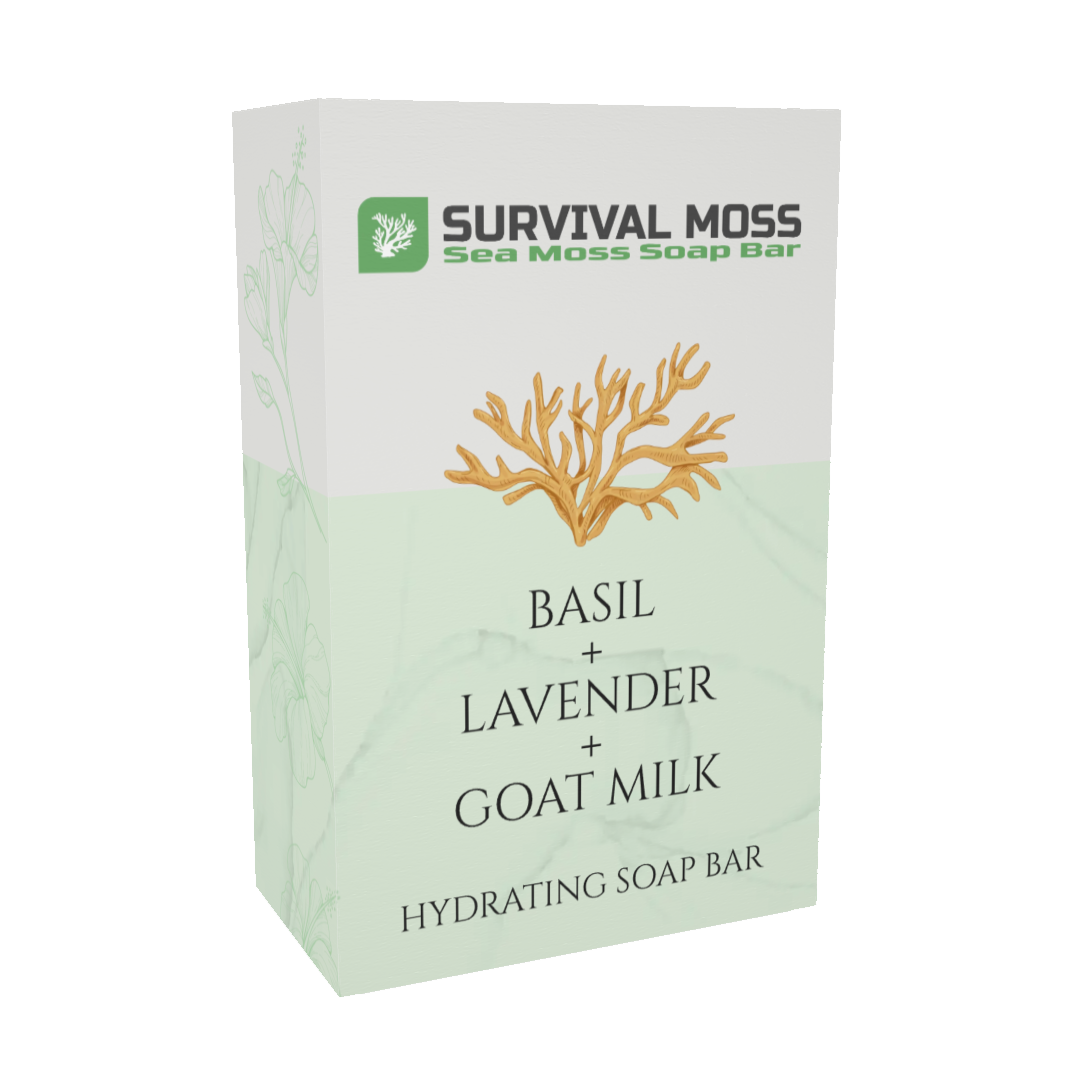 Fresh herbal basil meets calming lavender. A hydrating sea moss soap formulated for scalp and body use. This formulation is a gentle, conditioning cleanse that leaves skin and hair soft and refreshed