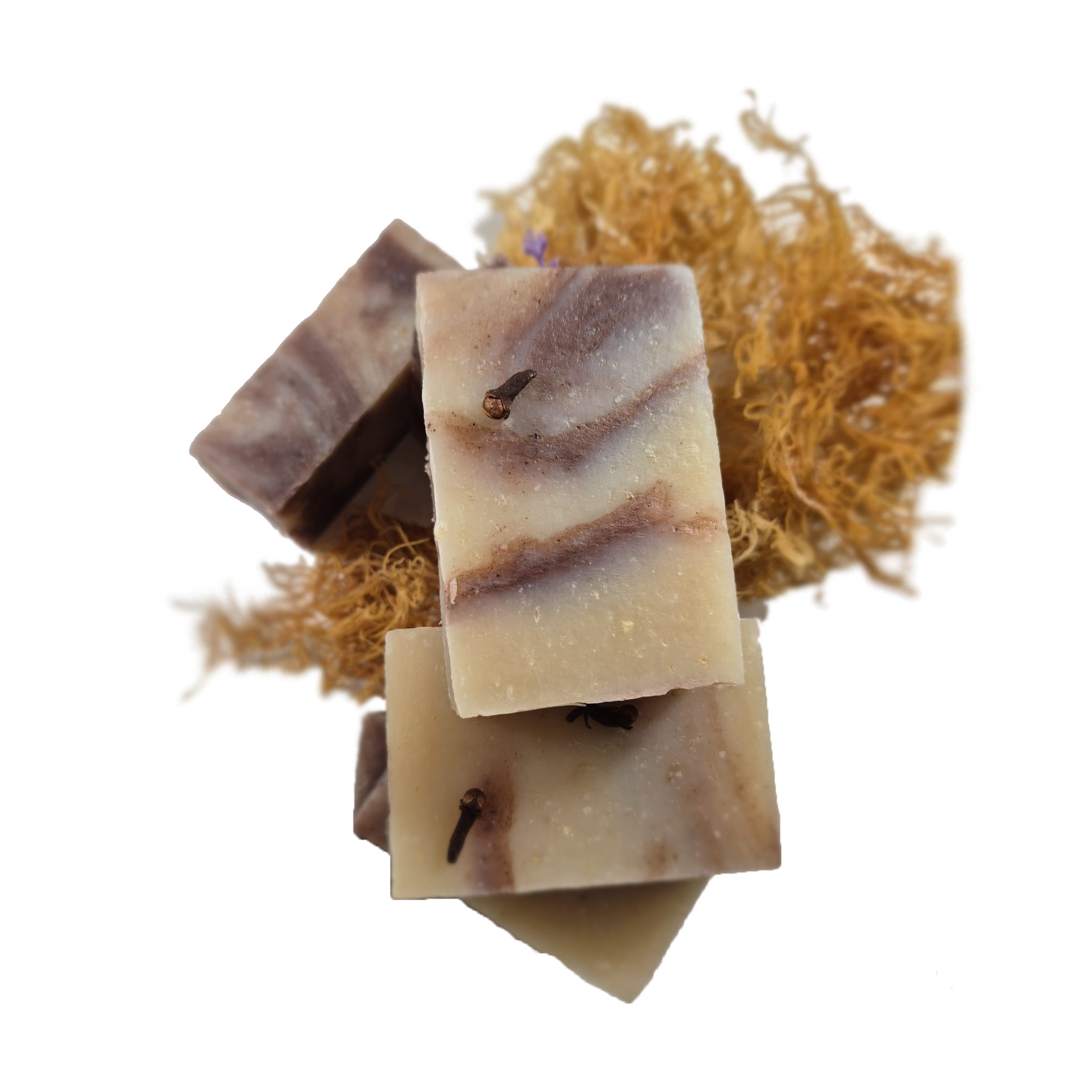 A vegan, multi-use hydrating soap bar designed for face, hair, and body. Formulated with sea moss, comfrey root, kaolin clay, and nourishing plant oils, and finished with warm notes of sandalwood, cedarwood atlas, and clove bud.